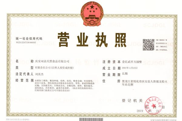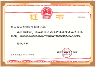 慶安雙潔天然食品有限公司認(rèn)定為黑龍江省農(nóng)業(yè)產(chǎn)業(yè)化重點龍頭企業(yè)